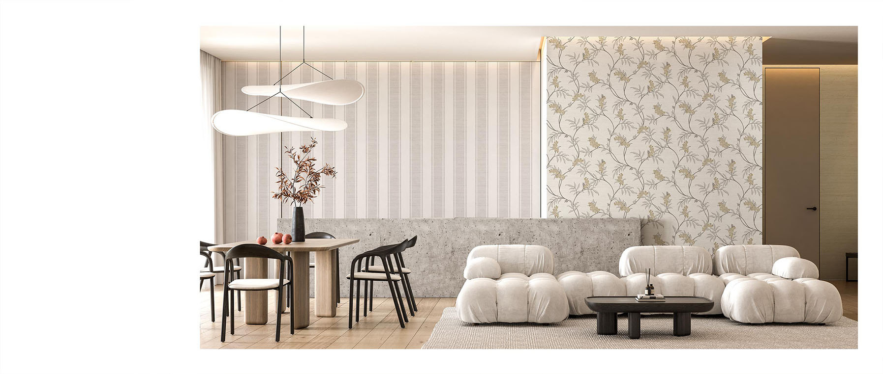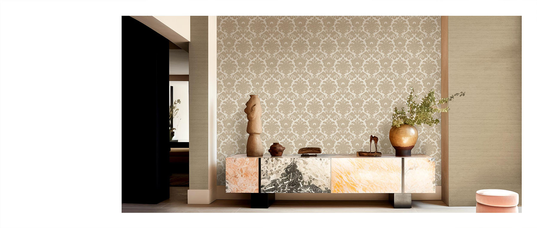 TRADIZIONI, elegante proposta che fonde la tradizione dei classici damaschi con raffinati floreali ornamentali.